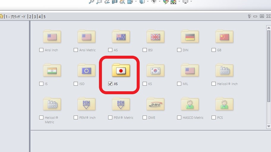 3.使用する規格を選択します。弊社では通常「JIS」のみを使用しているので、他のチェックを外しています。