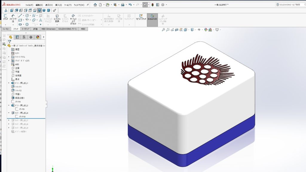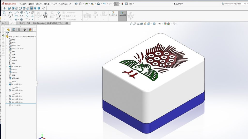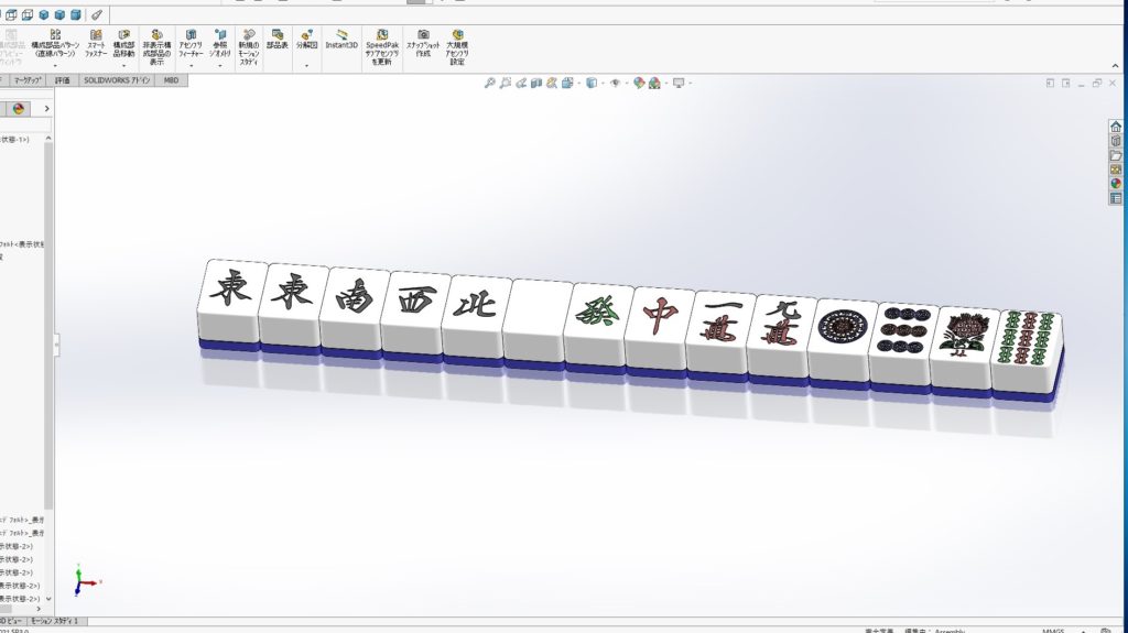 1.SOLIDWOKRKSではこのような麻雀牌をモデリングして役を作って楽しむこともできます。