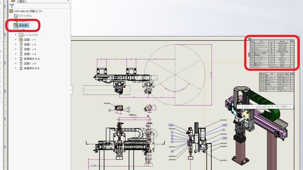 4.リンクしたい部品表が何番かは「FeatureManagerデザインツリー」より確認することができます。