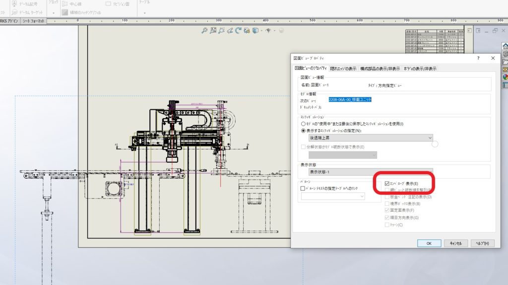 8.また図面ファイルでも同様に表示・非表示を切り替えることができます。