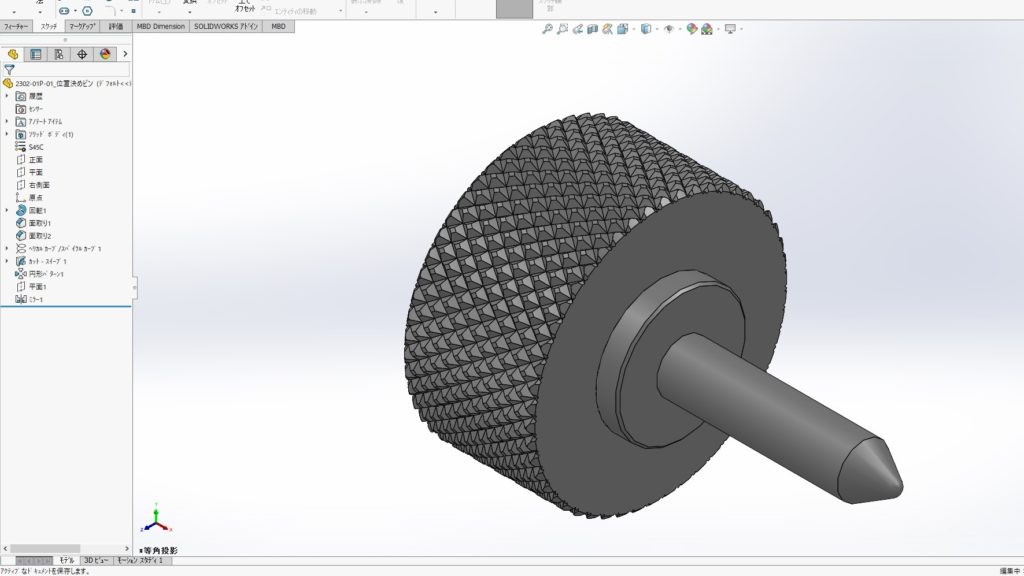 1.設備設計をしていると位置決めピン等でたまにローレット加工を指示することがあるかと思います。下図のように3Dモデルに作図をすると、処理が重くなり、手間がかかるわりにはたいしたメリットがありません。